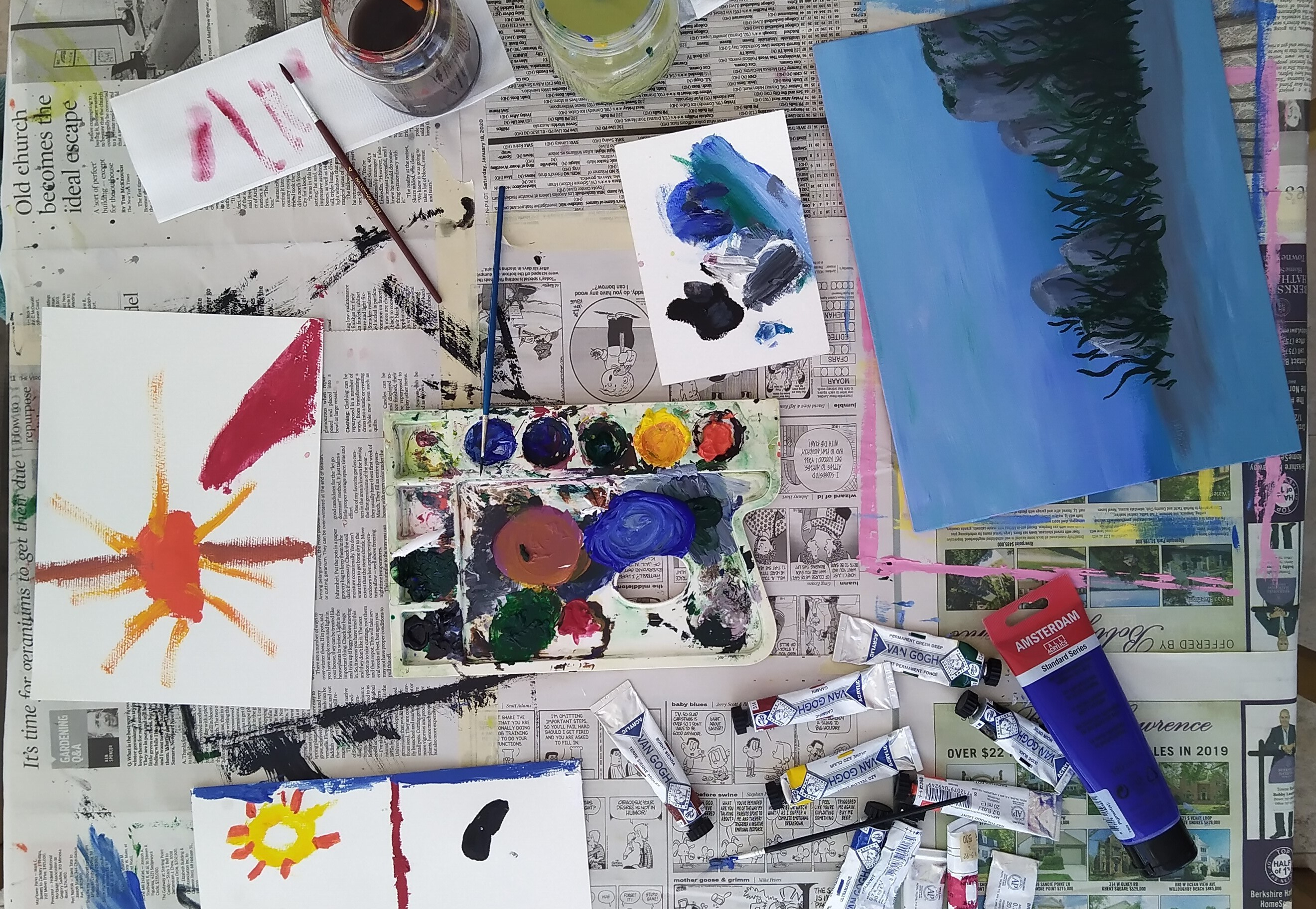 Immer Freitags bringt die Ex-Frau des Küchenchefs im Pink Octopus die gemeinsame Tochter ins Restaurant, damit der Vater sie übers Wochenende betreut. Es dauerte nicht lange bis die neugierige, siebenjährige Skylar uns entdeckte – zumal wir manchmal die einzigen Leute waren, die die Strandanlage benutzten. Nicht, dass wir Kontakt mit der kleinen Plaudertasche aufgenommen hätten, Skylar verschafft sich Aufmerksamkeit. Nachdem sie uns beim ersten Treffen nur belagert hatte und uns haarklein von ihren Tablet-Spielen erzählte, entdeckte sie mich beim zweiten Mal beim Malen. Nur ein einziges Mal hatte ich meine Künstlerfarben und die Staffelei an den Strand geschleppt, aber das reichte natürlich, dass auch die aufdringliche Kleine malen wollte. Wir verabredeten also am kommenden Montag, 1. Juni zum Malen. Da dieser ein Feiertag in den Bahamas war, war das Restaurant geöffnet und sie durfte (musste) mit Daddy zur Arbeit.